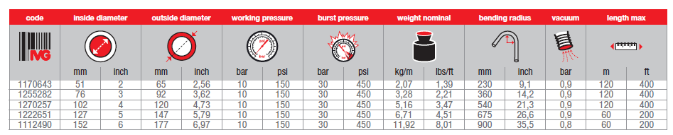 應用范圍: 硬壁軟管,用于吸入和輸送干水泥,沙子,礫石等散裝物料溫度范圍: -30°C (-22°F) 到 +70°C (+158°F)