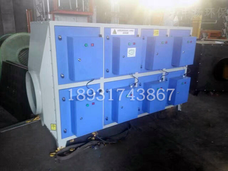 首先廢氣經(jīng)均流板過濾棉進(jìn)入設(shè)備時,由設(shè)備高壓穩(wěn)定高頻放電,瞬間產(chǎn)生1.5萬伏特至2萬伏特高壓,擊穿廢氣。此階段中,長鏈、多鏈廢氣分子由于鍵能較弱,約束力較小。很容易被擊穿化學(xué)鍵破裂,從而變成小分子化合物,此為第一階段凈化。其次,隨廢氣進(jìn)入設(shè)備的水分子、氧分子被高壓擊穿斷裂,生成強氧化基團(tuán)羥基、臭氧分子等。這些強氧化基團(tuán)與廢氣分子充分接觸氧化,加快反應(yīng)進(jìn)程。整個反應(yīng)干凈徹底,能量利用率高,凈化效率非常高。