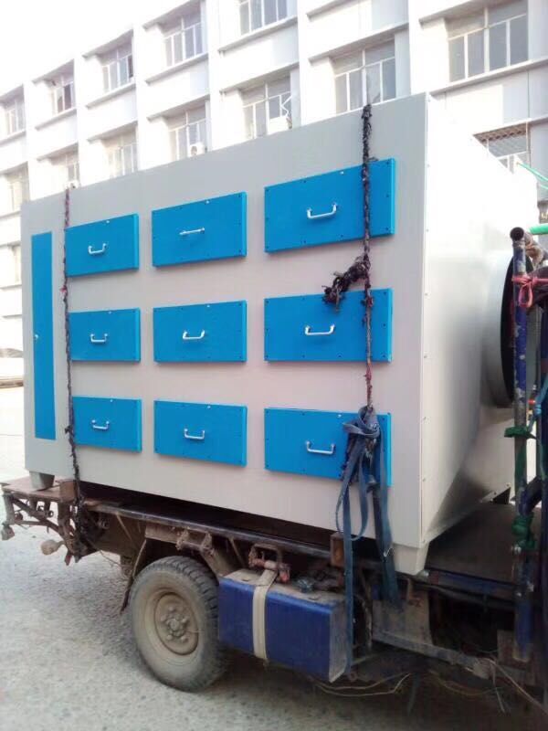 當(dāng)有機廢氣氣體由風(fēng)機提供動力,正壓或負(fù)壓進(jìn)入塔體,由于活性炭固體表面上存在著未平衡和未飽和的分子引力或化學(xué)健力,因此當(dāng)此固體表面與氣體接觸時,就能吸引氣體分子,使其濃聚并保持在固體表面,污染物質(zhì)及氣味從而被吸附,廢氣經(jīng)活性炭吸附塔后,進(jìn)入設(shè)備排塵系統(tǒng),凈化氣體高空達(dá)標(biāo)排放。