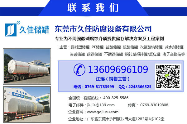 5、鹽酸儲罐適用范圍:化工、石油、印染、染料化工、造紙、電廠、食品、醫(yī)藥、農(nóng)藥、冶金、金屬表面處理、電子等行業(yè)。分別用于酸、堿、鹽等腐蝕性介質(zhì)的儲存、運輸;廢氣的吸收與處理;化工物料的反應(yīng)、攪拌、分離等應(yīng)用。