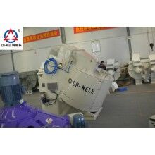 CQM系列高效強(qiáng)力混合機(jī)在強(qiáng)力混合機(jī)的料盤中,偏心安裝攪拌星與高速轉(zhuǎn)子。料盤以低速順時(shí)針方向旋轉(zhuǎn),連續(xù)不斷地將物料送入中速逆時(shí)針轉(zhuǎn)動(dòng)的攪拌星的運(yùn)轉(zhuǎn)軌跡內(nèi),借助料盤旋轉(zhuǎn)及刮料板的作用,將物料翻轉(zhuǎn)送入高速逆時(shí)針旋轉(zhuǎn)的高速轉(zhuǎn)子運(yùn)行的軌跡內(nèi)進(jìn)行混料。在連續(xù)的、逆流相對運(yùn)動(dòng)的高強(qiáng)度混練過程中,物料能夠在很短的時(shí)間內(nèi)混合均勻一致,