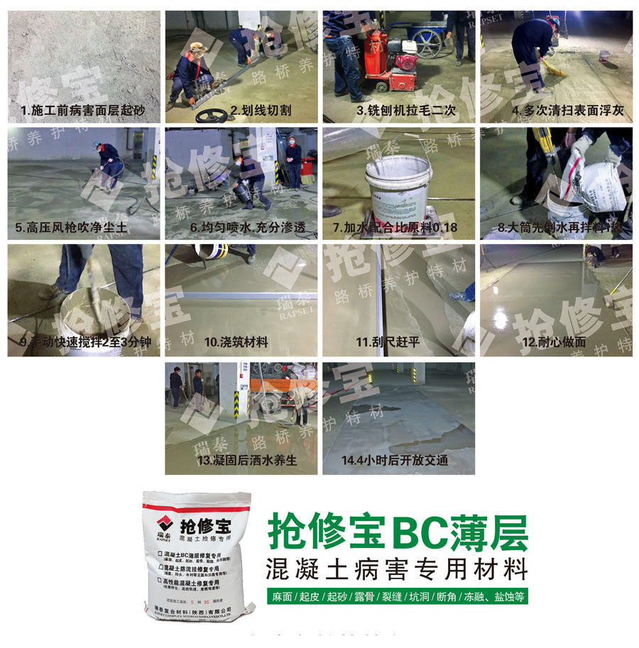 出現(xiàn)這些問題的主要原是因?yàn)槭┕べ|(zhì)量和產(chǎn)品本身的使用壽命問題,那么針對這種問題,地坪在修補(bǔ)處理基層時應(yīng)該選擇什么材料呢?首先應(yīng)考慮快速材料,因?yàn)槭堑叵峦\噲?,車輛需要頻繁進(jìn)入駛出;其次針對起塵、起砂、脫落的微表處病害,選擇針對微表處病害的修補(bǔ)材料。搶修寶BC薄層就是一個不錯的選擇,材料本身強(qiáng)度高,內(nèi)含進(jìn)口膠粉,可以和病害部位嚴(yán)絲合縫的結(jié)合起來,其次加入了進(jìn)口添加劑,材料可以30分鐘完成初凝,2-4小時就可以恢復(fù)交通,解決了車輛進(jìn)出頻繁引起的交通擁堵,是地坪修補(bǔ)基層處理的的不錯的選擇!