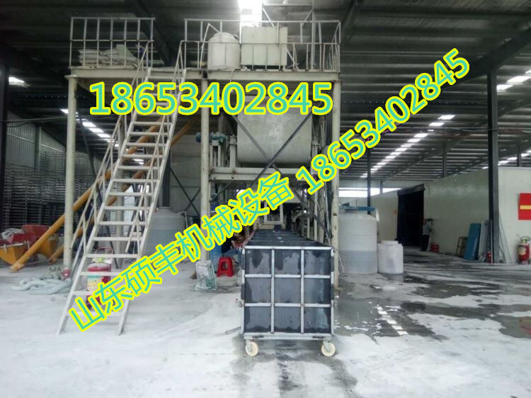 水泥基勻質(zhì)板設(shè)備產(chǎn)品先將減水劑加入水(水溫40℃左右)中,攪拌均勻約20秒,再加粉煤灰、水泥攪拌1分鐘,加樹脂膠攪拌一分鐘,加纖維、憎水粉、固化劑攪拌30秒(根據(jù)固化速度調(diào)整時(shí)間),入加引氣劑攪拌20秒后充入聚苯顆粒(氣泵打入泥漿底部)攪拌5-10秒鐘后(泡沫顆粒均勻) 裹漿)將料漿倒入模子中刮平。