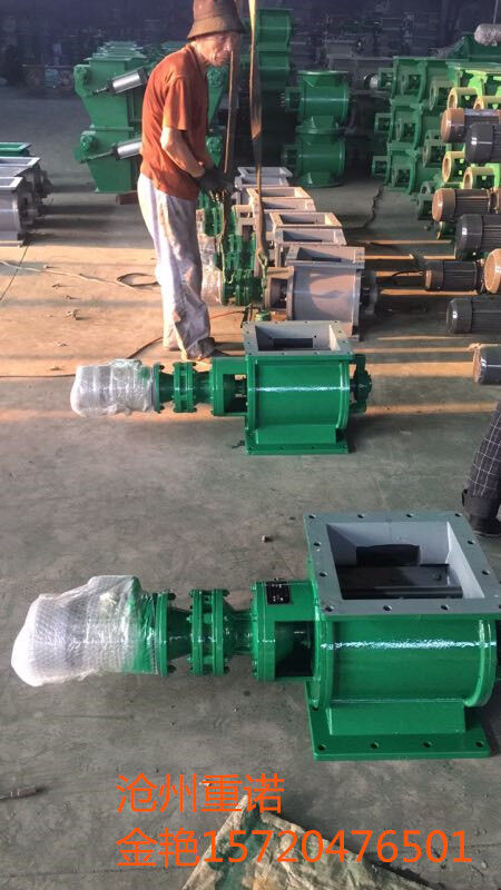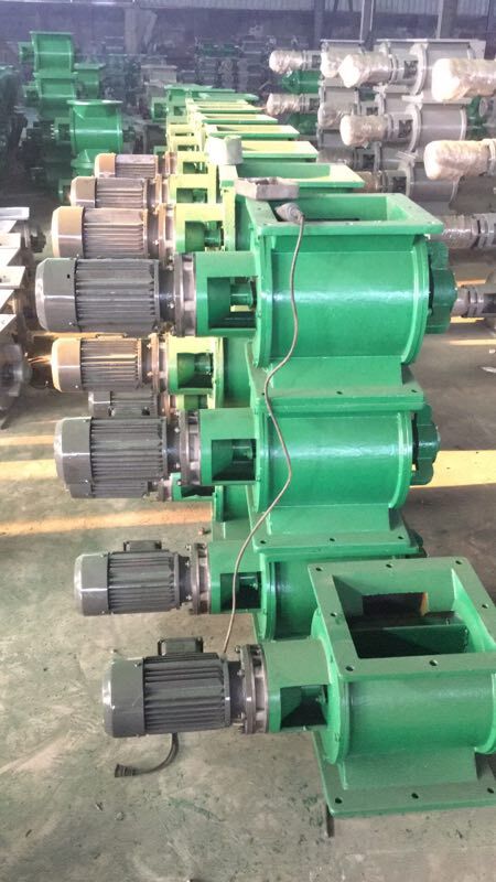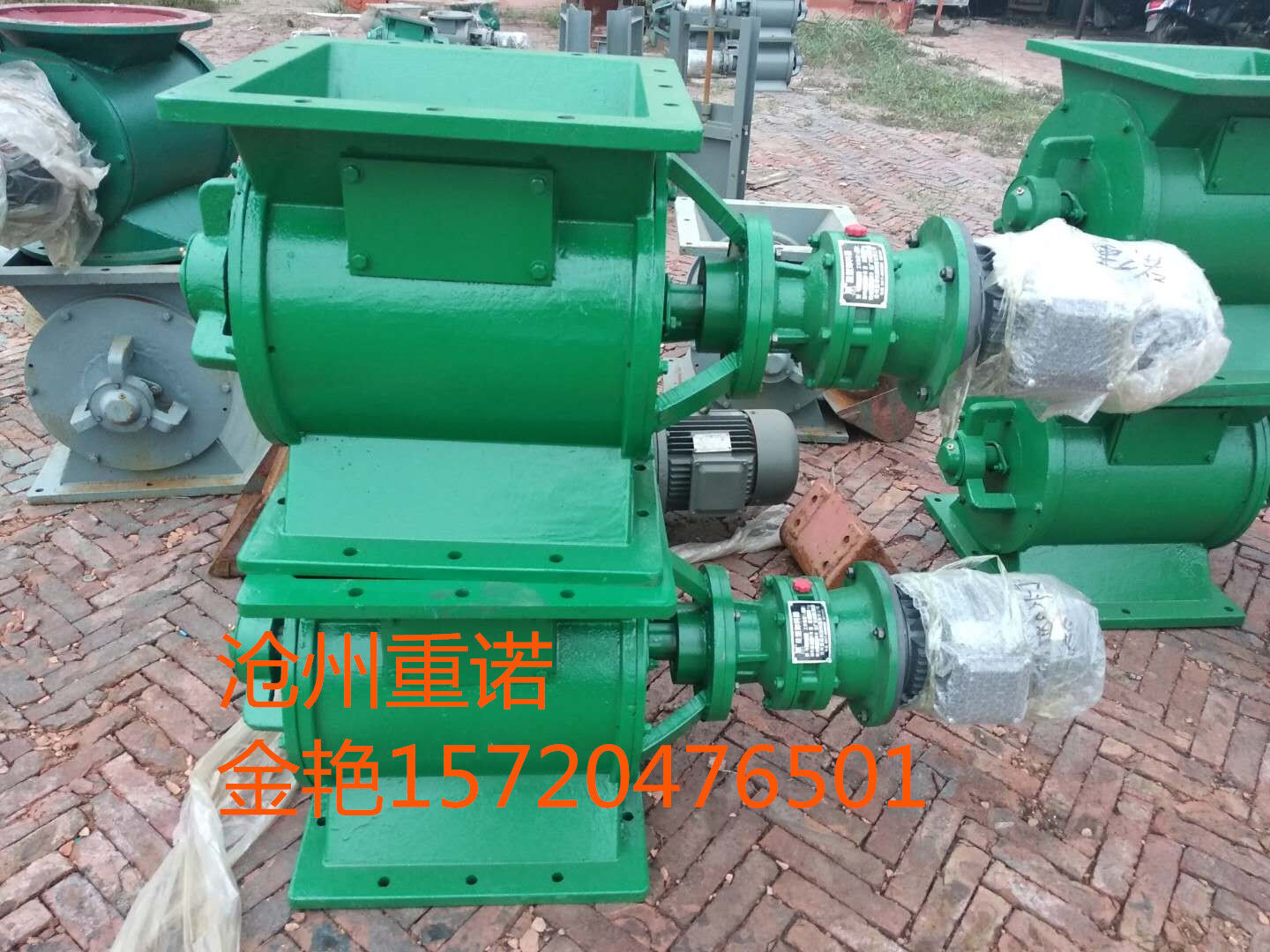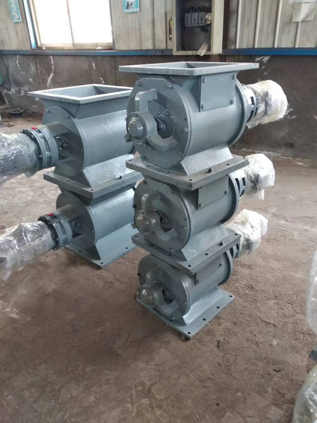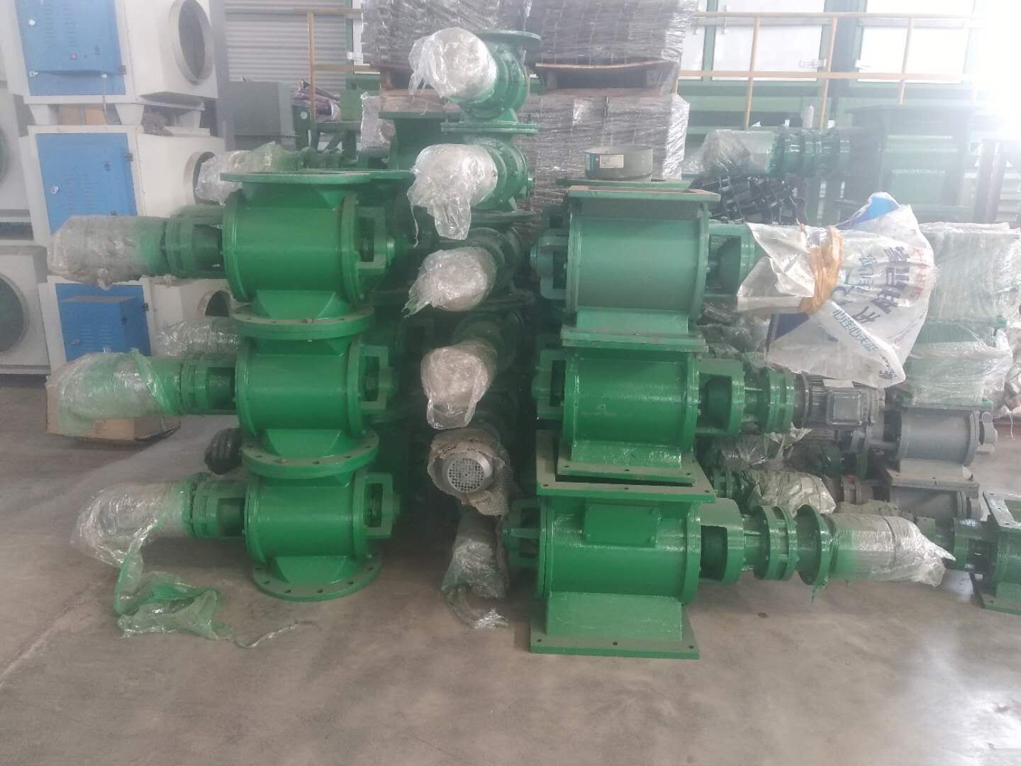 工作原理:星型卸料器工作時,粉塵靠重力落入,充滿上面和側面的星形葉片空格。葉片轉子由電動機通過減速機轉動軸帶動,葉輪轉到下部粉塵靠自重卸下。這種卸塵器一般都安裝在除塵器灰斗下部,為保證連接處的嚴密不漏風,在回轉卸料器的上部應經(jīng)常保持(儲存)一定高度的粉塵。因為葉輪轉動時,卸完粉塵后葉輪轉上的那一面經(jīng)常是沒有粉塵的,所以容易使空氣漏入。為了保持一定高度的灰柱,而且不致卸空,*在灰斗內(nèi)裝設料位信號設施,并與卸塵閥的電動機建立連鎖。