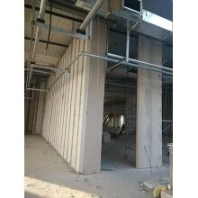 ④ 鋼結(jié)構(gòu)工程中相比夾芯彩鋼合板,防火性能優(yōu)勢更加明顯。本板材為無機(jī)材料加工,遇火不燃,100mm厚耐火極限即可達(dá)3.5小時(shí)以上。