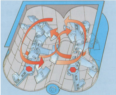 按一定的時(shí)間間隔向js1500混凝土攪拌機(jī)投入骨料、水泥、水等材料,兩根裝有攪拌臂及攪拌葉片的攪拌軸同時(shí)旋轉(zhuǎn),實(shí)現(xiàn)了正確而強(qiáng)制的攪拌。攪拌缸體中的材料被強(qiáng)制性地按水平、垂直方向流動(dòng),并被充分地?cái)嚢琛嚢栎S同時(shí)旋轉(zhuǎn),使攪拌材料時(shí)而被托起,時(shí)而又被送入內(nèi)部,以這種方式循環(huán)運(yùn)動(dòng),使攪拌得均勻的混凝土能以短的時(shí)間生產(chǎn)出來(lái)。