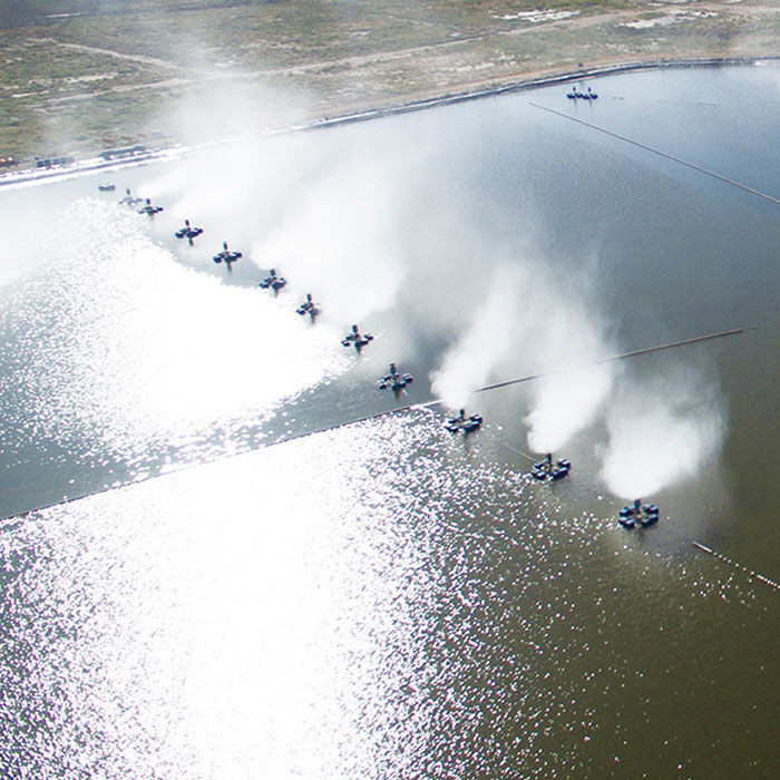 并且占地面積小、投資成本低。還有一種是風送式蒸發(fā)器、風送式蒸發(fā)器是把蒸發(fā)設備架在岸邊、利用高速旋轉的風機把水破碎噴灑在天空中進行蒸發(fā),這種和漂浮式蒸發(fā)器效果類似
