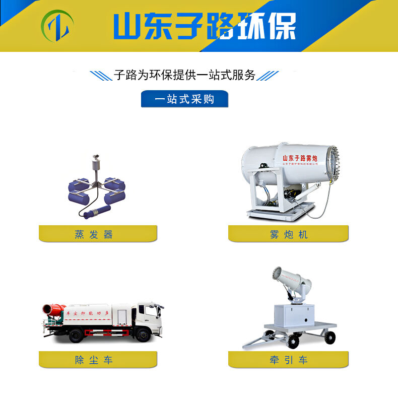 子路環(huán)??萍加邢薰疽豢钔ㄟ^高壓風(fēng)機(jī)將儲存的水壓縮成灰塵大小,在利用不銹鋼噴嘴部位將水霧化吹向高空凈化空氣的一種新型環(huán)保除塵產(chǎn)品。這款產(chǎn)品名字叫高射程霧炮機(jī),