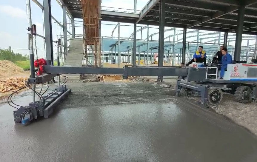 大型伸縮臂式整平機(jī)技術(shù)原理分析激光整平機(jī)是由刮板、振動器、振動板、攪籠等部件組成,將攪拌、找平、振平、振搗等多道工序整合到一起,由機(jī)器一次性完成。提高,節(jié)省人工。在地基高低起伏且路面傾斜的情況下,保持施工的水平面。 每分鐘6000次的高頻振動使整平頭振動板均勻的高頻振攪,使得混凝土地面密實(shí),分散形變應(yīng)力。能有效解決地面空鼓、起殼、開裂、不平等問題。
