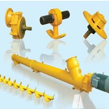 旋轉(zhuǎn)的螺旋葉片將物料推移而進(jìn)行螺旋輸送機(jī)輸送,使物料不與螺旋輸送機(jī)葉片一起旋轉(zhuǎn)的力是物料自身重量和螺旋輸送機(jī)機(jī)殼對(duì)物料的摩擦阻力。螺旋輸送機(jī)旋轉(zhuǎn)軸上焊的螺旋葉片,葉片的面型根據(jù)輸送物料的不同有實(shí)體面型、帶式面型、葉片面型等型式。螺旋輸送機(jī)的螺旋軸在物料運(yùn)動(dòng)方向的終端有止推軸承以隨物料給螺旋的軸向反力,在機(jī)長(zhǎng)較長(zhǎng)時(shí),應(yīng)加中間吊掛軸承。
