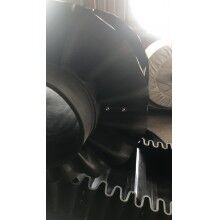 而使用比較多的就是那種帶擋邊帶隔板的輸送帶,也就是大傾角輸送帶。在這個(gè)輸送帶當(dāng)中隔板的作用其實(shí)有兩個(gè):一個(gè)是起到提升的作用,隔板是在擋邊中間,物料就是由給料機(jī)落入到各個(gè)擋邊中央,由輸送機(jī)提升到指定高度。而另一個(gè)作用就是料斗的作用,每條大傾角擋邊輸送帶由若干個(gè)隔板組成。每個(gè)隔板都根據(jù)客戶的需求設(shè)定了相等的間距,形成了一個(gè)小小的儲(chǔ)物室。
