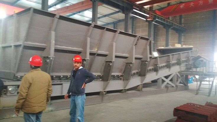 參數(shù)型號(hào) 皮帶寬度(mm) 鏈輪中心距(m) 安裝傾角° 物料塊度(mm) 料層厚度(mm)運(yùn)行速度(m/s) 給料能力(t/h) 適用卸載方式