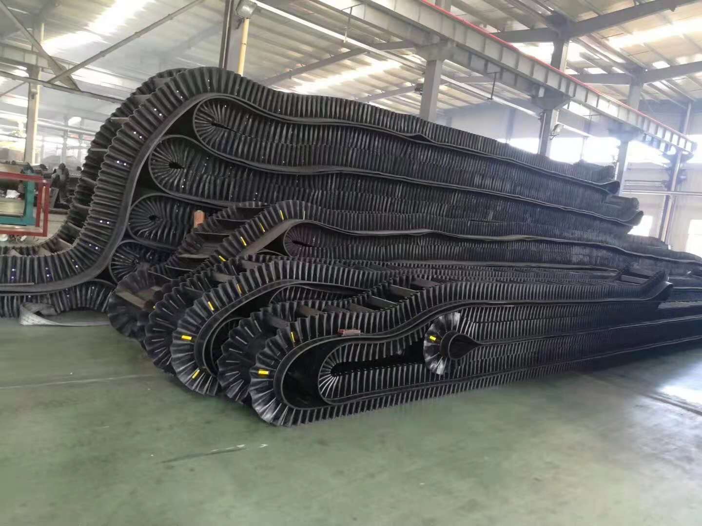 2 大傾角輸送帶直接不需要打孔,也不需要借助外力,而是借助本身的結(jié)構(gòu)就可以完成物料的由低處向高處的物料輸送。大傾角輸送帶的基帶和普通輸送帶的基帶是一樣的,也是平皮帶,這個平皮帶的生產(chǎn),經(jīng)過煉膠,硫化等等一系列的工序生產(chǎn)而成?;鶐У纳a(chǎn)對于大傾角擋邊帶來說也是一個很重要的步驟。在這一步的生產(chǎn)里,我們需要根據(jù)客戶的實(shí)際需求,選擇相對應(yīng)的拉力布層,現(xiàn)在無論是普通棉帆布布層,尼龍布層,聚酯布層,鋼絲繩芯布層,都可以由您進(jìn)行選擇。現(xiàn)在基本來說,普棉布層的拉力為56,尼龍,聚酯布層的拉力為100-400,鋼絲繩芯大傾角擋邊膠帶的拉力為st600-st5600。不同的拉力可以為您運(yùn)輸不同的物料。
