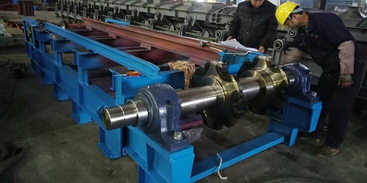 頭輪組裝有兩件主動(dòng)鏈輪,與尾輪組相呼應(yīng),頭輪組做為主動(dòng)輪組, 尾輪組為從動(dòng)輪組。當(dāng)傳動(dòng)機(jī)構(gòu)帶動(dòng)頭輪轉(zhuǎn)動(dòng)時(shí),帶動(dòng)輸送鏈條、刮板輸 送裝置運(yùn)轉(zhuǎn),完成輸送料過程。