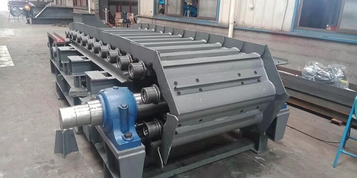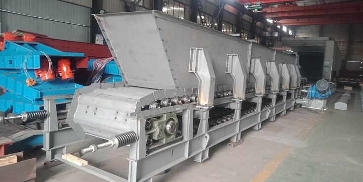 原板式給料機(jī)進(jìn)料為尾部進(jìn)料,現(xiàn)改造成雙側(cè)面進(jìn)料,有利于提高板式給料機(jī)料層厚度。