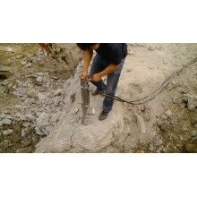 1.先用鑿巖機在巖石上鉆孔,鉆孔直徑要符合作業(yè)中的劈裂機楔塊組件的大小及長度,若巖石體積較大,可鉆多孔,一機多支分裂機同時作業(yè);巖石體積較小,一機就可操作。(鉆孔時需注意,礦石鉆孔的方位應垂直于孔所在的表面,孔的大小應與劈裂器的直徑相適應,鉆孔的深度比楔塊組件插人長度深200一250mm。)