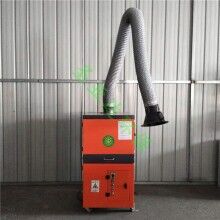 通過(guò)風(fēng)機(jī)引力作用,焊煙廢氣經(jīng)萬(wàn)向吸塵罩吸入設(shè)備進(jìn)風(fēng)口,設(shè)備進(jìn)風(fēng)口處設(shè)有阻火器,火花經(jīng)阻火器被阻留,煙塵氣體進(jìn)入沉降室,利用重力與上行氣流,先將粗粒塵直接降至灰斗,微粒煙塵被濾芯捕集在外表面,潔凈氣體經(jīng)濾芯過(guò)濾凈化后,由濾入潔凈室,潔凈空氣又經(jīng)活性碳過(guò)濾器吸附進(jìn)步凈化后經(jīng)出風(fēng)口達(dá)標(biāo)排出。