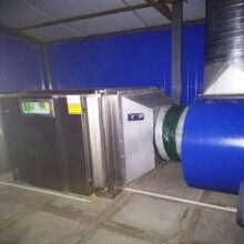 惡臭氣體利用排風設備輸入到UV光解凈化設備后,凈化設備利用特制的高能高臭氧UV紫外線光束照射惡臭氣體和TiO2光催化,催化裂解惡臭氣體,進行協(xié)同分解氧化反應,使惡臭氣體物質其降解化成低分子化合物、水和二氧化碳,再通過排風管道排出室外。