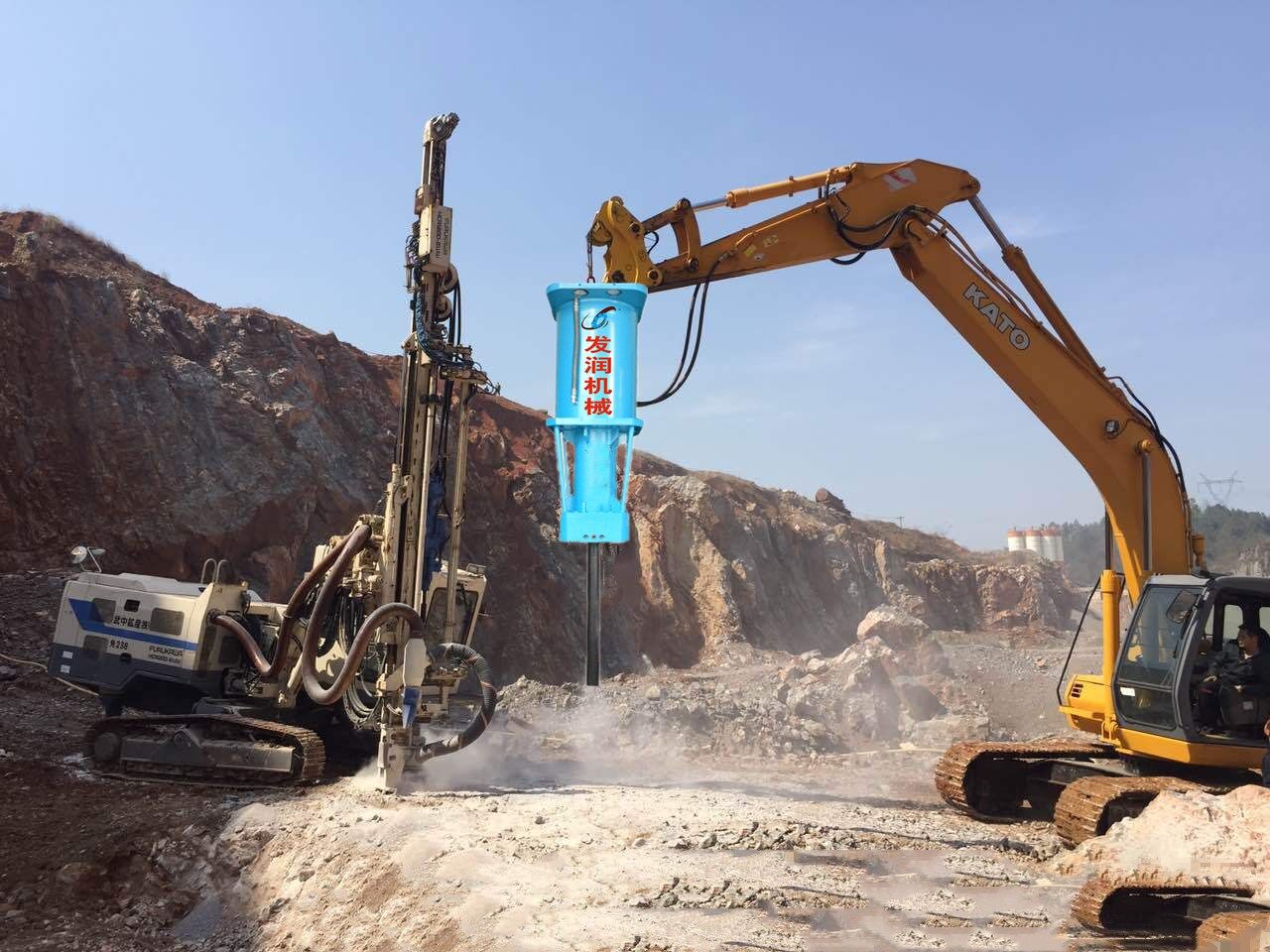 大型破碎巖石設備替代了爆破和傳統(tǒng)的破碎方法。它在破碎巖石和混凝土時不會產(chǎn)生壓力波,也沒有振動、噪音和粉塵,在采石場的荒料開采也擁有很大的技術優(yōu)勢。
