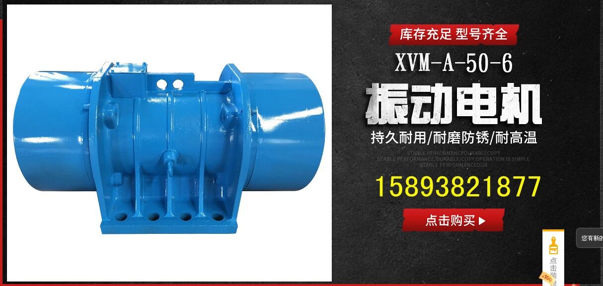 XVM-A系列振動(dòng)源三相異步電動(dòng)機(jī)集動(dòng)力源和振動(dòng)源為一體,是一種高效節(jié)能的通用性激振源,體積小,激振力大,結(jié)構(gòu)可靠,使用維護(hù)方便,簡稱振動(dòng)電機(jī)。其它名稱:,震打電機(jī)。本系列產(chǎn)品廣泛應(yīng)用于礦山、煤炭、電力、化工、糧食加工、冶金、鑄造、輕工、醫(yī)藥等行業(yè)。是實(shí)現(xiàn)粉狀、粒狀、塊狀等散體料機(jī)械化篩分、輸送、破碎、充填、防堵塞的理想激振源。本機(jī)可單機(jī)使用,也可多機(jī)組合使用。 1、振動(dòng)電機(jī)使用條件 本系列振動(dòng)電機(jī)滿足下列條件時(shí),能連續(xù)輸出額定激振力。 (1) 振動(dòng)加速度:不超過7g(g:重力加速度) (2) 環(huán)境溫度:不超過40℃ (3) 海拔:不超過1000m (4) 電源頻率:50HZ (5) 電壓:380v (6) 溫升:小于80K(電阻法) 2、振動(dòng)電機(jī)型號說明 (1) XVM-A系列產(chǎn)品型號由三部分組成(如下示例) XVM-A 5-4 XVM-A---振動(dòng)電機(jī) 5---*大激振力(千牛頓) 4---極數(shù) (2)XVML系列表示立式安裝振動(dòng)電機(jī)。