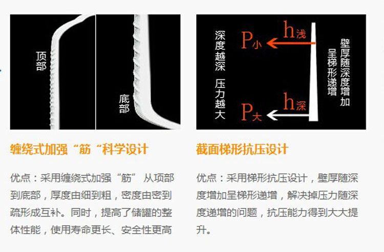 1)產(chǎn)品采用韓國進(jìn)口高質(zhì)量LLDPE作為產(chǎn)品生產(chǎn)原材料,生產(chǎn)出來的pe儲罐具有無毒、無味、耐酸、耐堿、耐沖擊、耐高溫、耐寒、不易老化等優(yōu)點。