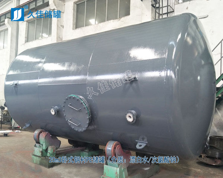 久佳鋼襯聚乙烯儲罐、次氯酸鈉儲罐是以聚乙烯(PE)為原料,采用旋塑工藝(滾塑技術)一次整體成型。將鋼網焊接于鋼體表面,使鋼體表面、鋼、網、塑復合形成一個整體,這種鋼襯聚乙烯儲罐既有高強度物理機械性能又有高強度耐化學腐蝕性能。鋼襯塑產品一般由桶身、平底、封頂、人孔、進料口法蘭、出料口法蘭和液位孔口法蘭組成,臥室鋼襯聚乙烯儲罐通常還有標準鋼質支座。鋼襯塑產品一般根據(jù)用戶要求設計制造。產品整體滾襯塑層一次成型,無接縫、堅固耐用、衛(wèi)生潔凈、耐任何濃度硫酸、氫氟酸、鹽酸、磷酸、稀硝酸、次氯酸鈉溶液等、壽命長、絕緣好,且反應介質不會與金屬離子接觸。具有良好的耐腐蝕、耐磨損、壽命長等優(yōu)點,是裝運腐蝕液體的理想產品,在化工、稀土、冶金、農藥等行業(yè),用作85度以下的次氯酸鈉儲罐、低壓罐、真空罐、反應釜、交換柱等,深受用戶歡迎。