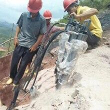 開采堅(jiān)硬巖石大型機(jī)載液壓分裂機(jī)令中小企業(yè)難于接受。劈裂器主要性能:無震動(dòng)、無沖擊、無噪音、無粉塵,數(shù)秒鐘內(nèi)可完成,工作效率高可控、拆除非,阿里巖石裂石器多少錢一套當(dāng)撐力超過其抗拉強(qiáng)度時(shí),就可以將被拆的結(jié)構(gòu)從內(nèi)部裂開,細(xì)鋼筋(8以下)可同時(shí)被拉斷,而粗鋼筋則可通過氣割等方法進(jìn)行破斷,達(dá)到拆除的目的,豎井巖石設(shè)備巖石液壓劈裂機(jī)出現(xiàn)問題及解決方法,手持便攜式劈裂機(jī)出現(xiàn)問題及解決方法。項(xiàng)目深圳市中鐵十七局的深圳地鐵隧道工程中,有暗挖雙聯(lián)拱隧道,施工面積達(dá)365.17延米,質(zhì)地條件復(fù)雜,大面積的7.6度的花崗巖待拆除,破碎錘施工法在花崗巖上施工,拆除效率低,速度慢,成本大幅度提高。工程部急需快速拆除花崗巖,提高工程進(jìn)度,設(shè)備配置:(一個(gè)臺(tái)班)風(fēng)4把。