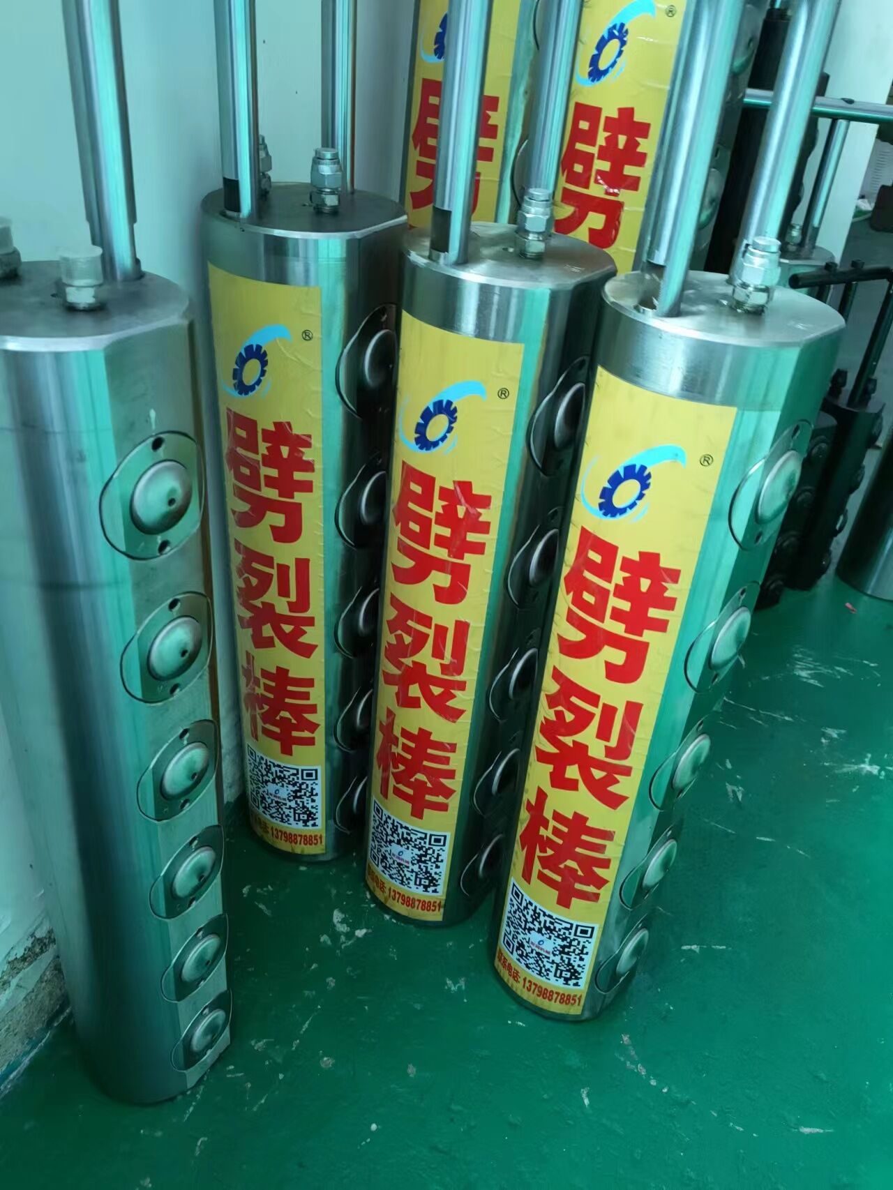 液壓柱塞式棒原理及組成液壓柱塞式棒主要由液壓泵站和劈裂器(棒)兩部分組成。120-150MP超高壓油泵站輸出的高壓油驅(qū)動油缸產(chǎn)生巨大推動力(1300-1500噸),并推動劈裂棒上的活動活塞向外運(yùn)動,從而使活塞產(chǎn)生的作用力作用于被體孔壁,巖石在巨大的作用力下按預(yù)定方向裂開。