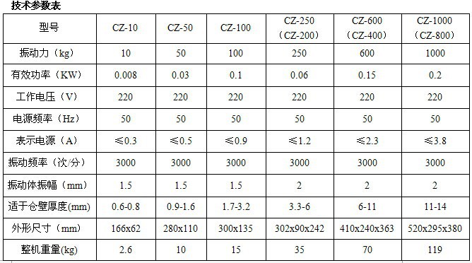 CZ600電磁倉(cāng)壁振動(dòng)器參數(shù)