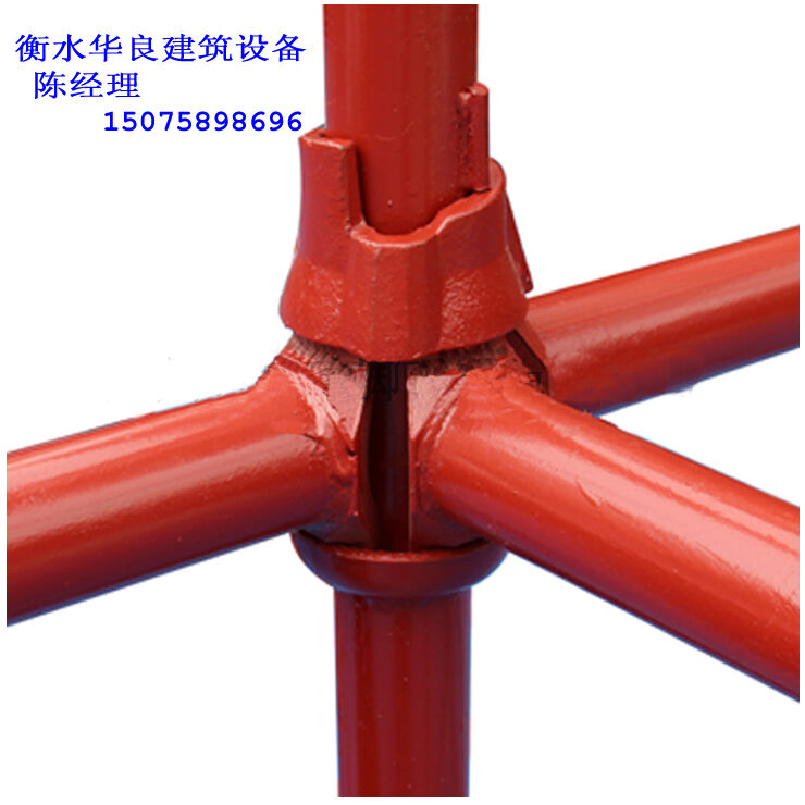 碗扣腳手架獨(dú)特的結(jié)點(diǎn)設(shè)計(jì),雖仍應(yīng)歸為鉸接,但卻能夠承受相對(duì)更大的荷載,再加上其立桿上的上碗和橫桿上的插片均為鍛鋼的工藝,使這款碗扣腳手架系統(tǒng),在國(guó)外被廣泛地應(yīng)用于化工廠、煉油廠、油田以及大型船艦維修等荷載相對(duì)較高的領(lǐng)域。考慮到系統(tǒng)的穩(wěn)定性,安裝斜桿是必須的。為了補(bǔ)足這個(gè)弱項(xiàng),該系統(tǒng)特意設(shè)計(jì)了另外一類斜桿,在斜桿的兩頭,均用高強(qiáng)度螺栓,各固定半個(gè)旋轉(zhuǎn)扣件,扣件亦采用鍛鋼工藝。這樣,盡管斜桿無(wú)法直接在碗扣的結(jié)點(diǎn)扣接,但可以用扣件扣接在橫桿或立桿的適當(dāng)位置上,也大大地改善了系統(tǒng)的穩(wěn)定性。