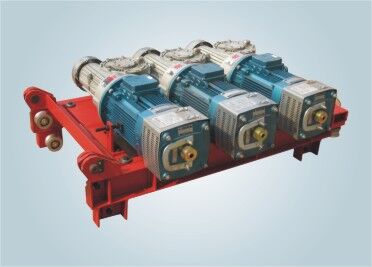 傳動機(jī)構(gòu)由電動機(jī)、電磁制動器、彈性聯(lián)軸器、蝸輪蝸桿減速器及傳動齒輪等組成。傳動機(jī)構(gòu)在吊籠上通過齒輪與