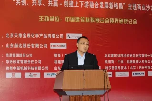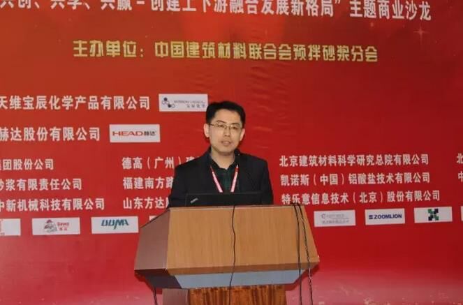 以“共創(chuàng)、共享、共贏-創(chuàng)建上下游融合發(fā)展新格局”為主題的商業(yè)沙龍由預(yù)拌砂漿分會副理事長、北京敬業(yè)達新型建材有限公司董事長張新主持。預(yù)拌砂漿分會會員單位、徐州中新機械科技有限公司總經(jīng)理權(quán)躍以“綠色環(huán)保智能特種砂漿工廠”為題首先進行講解;預(yù)拌砂漿分會副理事長單位,北京金隅砂漿有限公司總經(jīng)理蔡魯宏則分享了“破解預(yù)拌砂漿發(fā)展困境的思考——最新行業(yè)政策解讀”;山東方達康工業(yè)纖維素有限公司總經(jīng)理馮文利則系統(tǒng)闡述了“羥丙基甲基纖維素的特性及在抹灰機噴砂漿中的應(yīng)用”。
