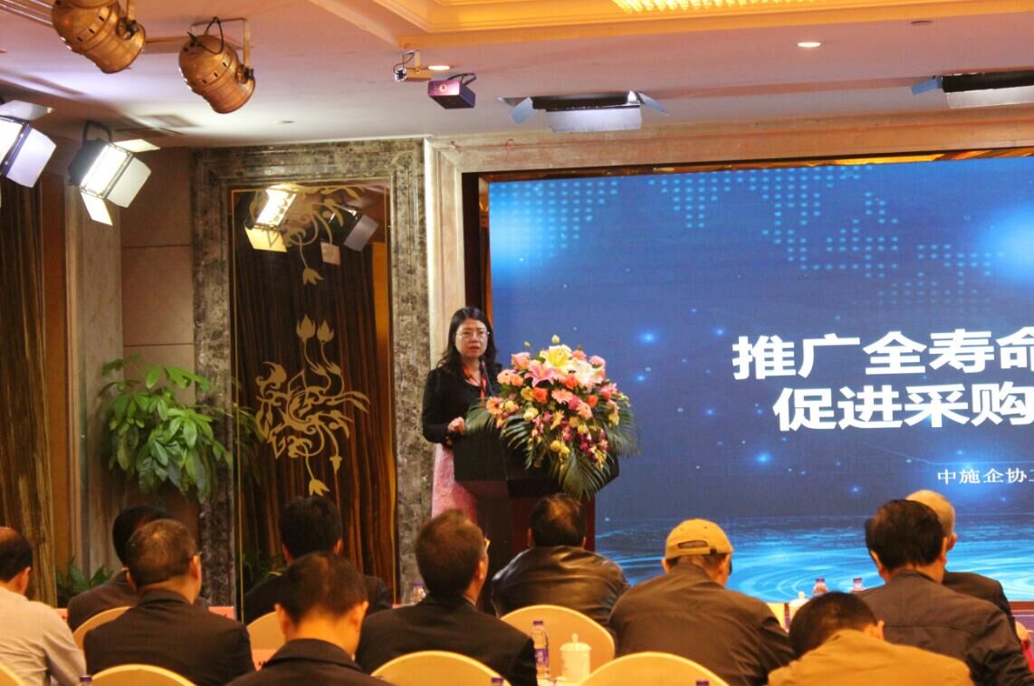 中國施工企業(yè)協(xié)會數(shù)據(jù)服務(wù)有限公司總經(jīng)理謝美珍做《推廣全壽命管理技術(shù)體系,促進(jìn)采購供應(yīng)業(yè)務(wù)提升》報告