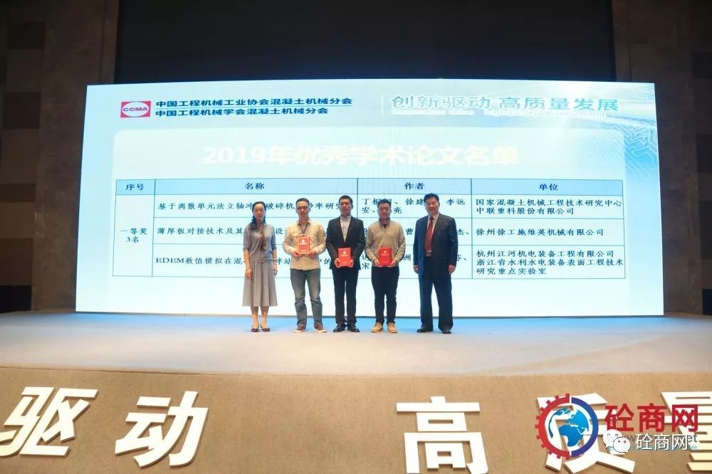 中國(guó)工程機(jī)械工業(yè)協(xié)會(huì)混凝土機(jī)械分會(huì)符忠軒會(huì)長(zhǎng)以及中國(guó)工程機(jī)械工業(yè)協(xié)會(huì)混凝土機(jī)械分會(huì)顧問(wèn)易君女士為優(yōu)秀論文一等獎(jiǎng)獲得者頒發(fā)獲獎(jiǎng)證書(shū);